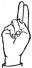 На ћирилици написано МИРОСЛАВ ПАВКОВ састоји се из 14 слова [?]. Исписано ћириличном једноручном азбуком за глувонеме: